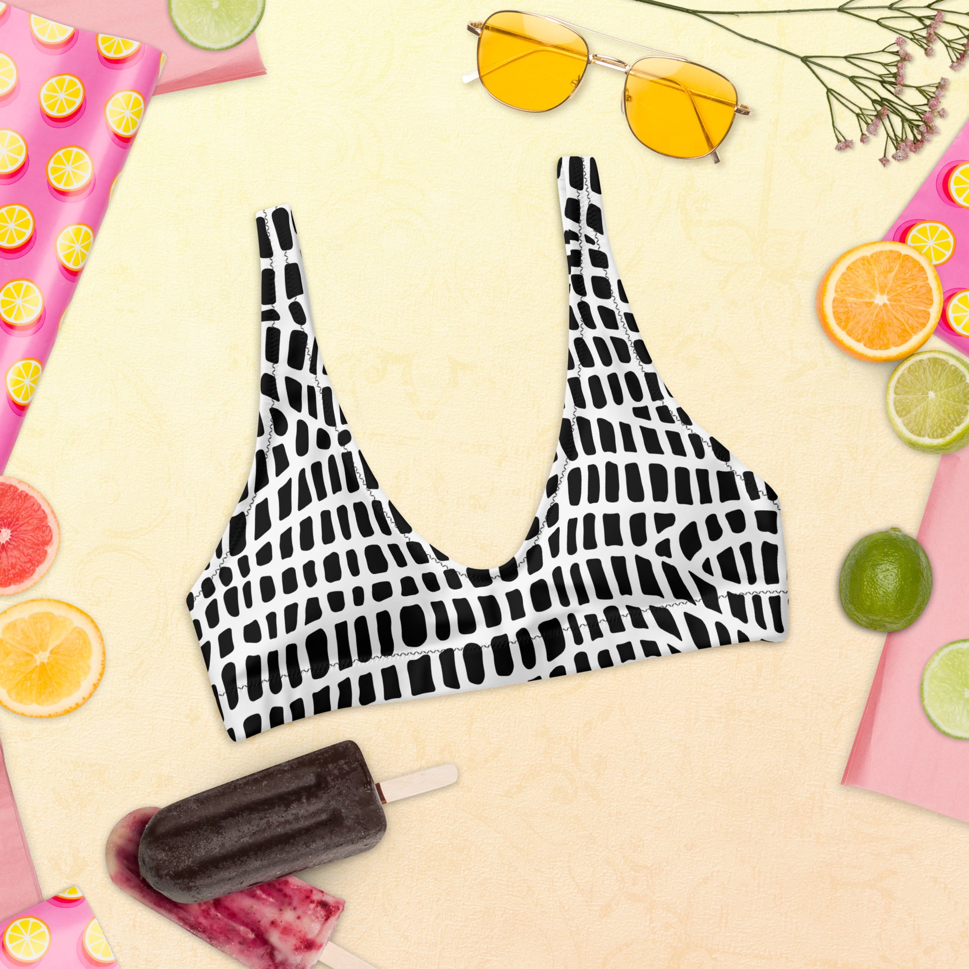 ¡Hazte con este sujetador bikini reciclado all over para tus aventuras estivales! Es muy cómodo e incluye almohadillas que puedes quitar. Para que sea todavía más versátil, combínalo con distintas partes de abajo de bikini para conseguir un look de moda.