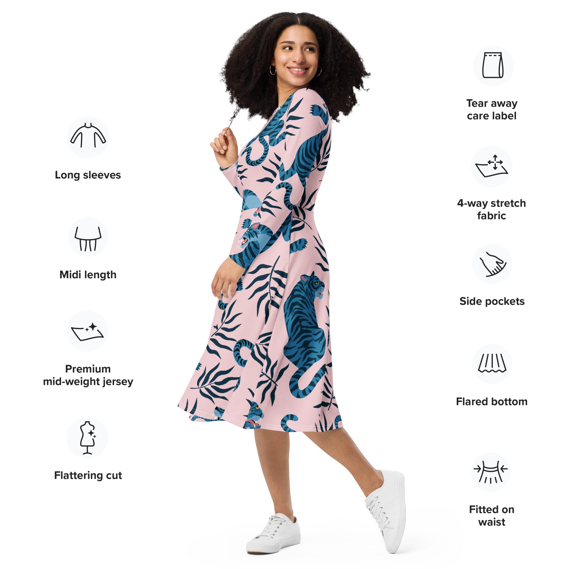 ¡Te presentamos tu nuevo vestido favorito! Su suave tejido y su favorecedor corte harán que te sientas cómoda y femenina durante todo el día. Además, la cintura ajustada y la parte inferior acampanada del vestido acentuarán la silueta naturalmente bella de quien lo lleve. ¿Lo mejor del vestido? ¡Que tiene bolsillos!